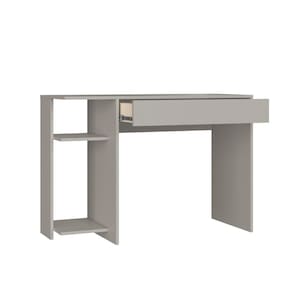 A Escrivaninha 1 Gaveta Pixel Moveis Castro alia funcionalidade e estilo ao seu ambiente. Produzida em MDP de 15mm com fundos em MDF 3mm e acabamento em U.V., garante durabilidade e facil manutencao. Conta com uma gaveta espacosa -35x9x72,7cm- com corredicas telescopicas de extracao total e duas prateleiras -33,5x15x25,6cm-, ideais para organizacao. Com amplo espaco e excelente distribuicao interna, e a escolha perfeita para quem busca funcionalidade e beleza.