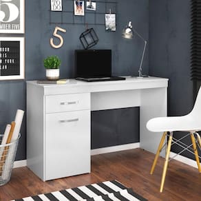 Mesa de estudos prática e usual que oferece dimensões ideais sem comprometer o espaço dos ambientes. Modelo dispõe de uma gaveta e compartimento com porta para acomodação de pertences.