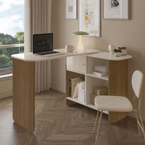 A Escrivaninha 1 Porta de Correr Nomad Artely é versátil e funcional, ideal para ambientes compactos. Com tampo rotativo de 180°, pode ser utilizada em L, reta ou fechada. Possui 4 nichos organizadores, 1 porta de correr e cantos arredondados, unindo funcionalidade, segurança e estilo. Estrutura em MDF/MDP.