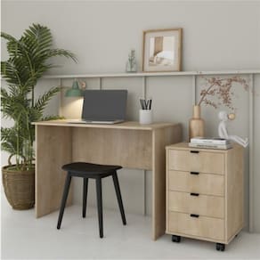O gaveteiro com design minimalista e puxadores em metal, esse item é fundamental para escritórios e espaços dedicados aos estudos, pois auxiliam na organização de materiais e claro dão um toque de estilo ao ambiente. Altura do Conjunto: 74 cm Ambiente: null Ambiente Principal: Escritório Cor: Madeira Informação Complementar: 1x Escrivaninha para Escritório 100cm York Amadeirado Largura: 100 cm Altura: 74 cm Peso: 13,98 kg Profundidade: 50 cm Necessita Montagem: Sim