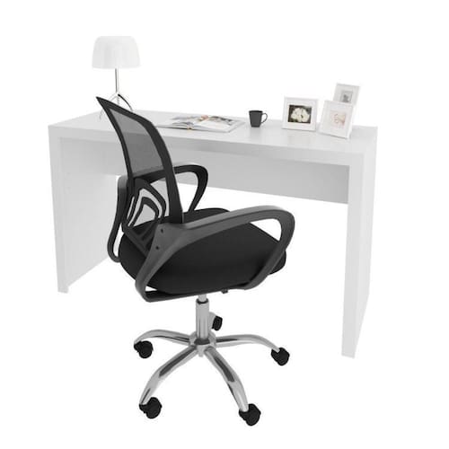 A cadeira tem estrutura em poliuretano de altíssima qualidade, que proporciona muito mais resistência, mesmo com o passar dos anos. O acabamento em verniz deixa o móvel mais bonito e dá mais destaque a decoração de toda a casa. Essa cadeira tem design versátil, assento confortável e vem com kit de montagem, para tudo ficar mais rápido e prático. Ela suporta até 120 kg de peso máximo, que dá mais tranquilidade ao sentar e tem 4 pés com rodízios em PU que não arranham o piso do cômodo. Acabamento: BP Altura do Conjunto: 85 cm Ambiente: Escritório Ambiente Principal: Escritório Cor: Branco Informação Complementar: 1x Escrivaninha 127cm ME4135 Branco Largura: 127 cm Altura: 74,5 cm Peso: 16,7 kg Profundidade: 46,5 cm Necessita Montagem: Sim