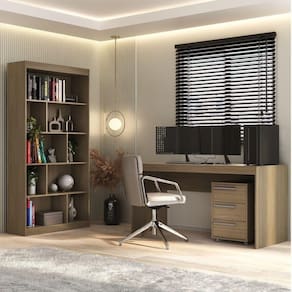 Os produtos da linha Home Office possuem um design sofisticado, reto, com um acabamento moderno e em pintura UV com textura. Podem ser utilizados tanto como escritório ou até ambientes de trabalhos em seu lar. Estante livreiro com diversas prateleiras, uma maneira ideal para organizar seu lar e valorizar a decoração da sua casa com grande estilo. Um produto com materiais e acabamento de ótima qualidade, tudo que você precisa para decorar a sua casa. Acabamento: Pintura UV Altura do Conjunto: 181 cm Ambiente: null Ambiente Principal: Escritório Cor: Avelã TX Informação Complementar: 1x Estante para Livros 4 Prateleiras Home Office Avelã TX/Avelã TXLargura: 93 cmAltura: 181 cmPeso: 35 kgProfundidade: 30 cmNecessita Montagem: Sim1x Gaveteiro 3 Gavetas com Rodízios Avelã TX/Avelã TXLargura: 40 cmAltura: 59 cmPeso: 15 kgProfundidade: 45 cmNecessita Montagem: Sim1x Escrivaninha Home Office Avelã TX/Avelã TXLargura: 150 cmAltura: 75 cmPeso: 23 kgProfundidade: 60 cmNecessita Montagem: Sim Material Principal: MDP Possui Portas: Não
