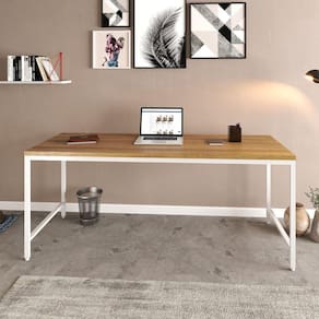 Escrivaninha 180cm Estilo Industrial Diretor Active Yescasa Lâmina Mel / Est.Branca