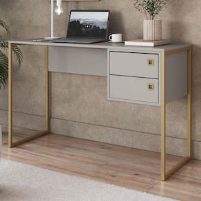 Escrivaninha 2 Gavetas P1012, o móvel ideal para tornar seu ambiente mais elegante. Estrutura em metal com pintura epóxi e MDP 15 mm. Possui 2 gavetas com corrediças metálicas e puxadores em plástico, além de ponteiras plásticas que evitam atrito com o piso. Escrivaninha multifuncional que combina com diversos ambientes. Produto entregue em 1 volume.