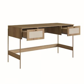 A Escrivaninha Oslo é confeccionada em MDP com acabamento BP, pés de metal e aplique de tela sintética nas gavetas. Móvel com ampla superfície para trabalho e estudos, conta com duas gavetas para guardar acessórios, tornando o espaço mais organizado. Traz como característica um traço artesanal, suave e acolhedor. Com design escandinavo minimalista, remete em suas linhas retas a simplicidade, charme e funcionalidade que sua casa merece. Composta com uma paleta de cores neutras, onde refletem as paisagens nas quais a linha foi inspirada, tornando-se assim a opção ideal para um ambiente com toque sofisticado e ao mesmo tempo aconchegante. Produto Montado: Sim Acabamento da Gaveta: BP Acabamento dos Pés: Pintura Ambiente Principal: Escritório codigo_ean: 7909903250938 Complexidade da Montagem: Média: pode ser montado por mais de uma pessoa e/ou necessite de maior conhecimento para montagem Cor: Hanover/Dourado Cor Interna: Hanover Escala de Brilho: Fosco Escala de Brilho da Gaveta: Fosco Espessura do Tampo: 15 mm Gaveta com Chave: Não Manual de Montagem e Instalação: https://product-hub-prd.madeiramadeira.com.br/826678/documents/1b2e55f3-2aaa-48c5-b88e-97efbf8dea2a112438627931.pdf Material da Gaveta: MDP Material dos Pés: Aço Material Principal: MDP Montagem Flex: Sim, mesa simétrica. Necessita Montagem: Sim Origem do Produto: Nacional Pés Reguláveis: Não Peso: 23 kg Peso Máximo por Gaveta: 2 kg Possui Pés: 04 Possui Portas: Não Recomendações de Uso, Manutenção e Limpeza: Limpar utilizando apenas pano umedecido com água, nunca utilizar produtos químicos ou abrasivos, pois estes danificam o revestimento do móvel. Sistema de Montagem: Fixação é feita por parafusos, minifix, cavilhas e pregos, possibilitando a desmontagem do produto sem danificá-lo Suporta Até (kg): 19 kg Tipo de Puxador da Gaveta: Externo
