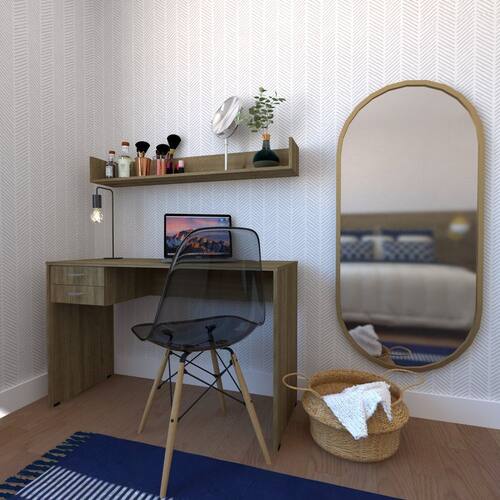 Os Móveis devem ser escolhidos com muito carinho, independente de qual for o ambiente, pois eles fazem parte da rotina do dia a dia do nosso lar ou trabalho. Portanto, na hora de decidir qual modelo, lembre-se: além de ter a ergonomia necessária, a medida ideal, um design incrível, eles também devem cumprir suas funções com desempenho total, e na hora da escolha das cores, elas devem combinar com seu estilo e personalidade. As Mesas para Quarto, para Home Office ou para Penteadeira da Bramov Brasil possuem um design encantador, que permite trazer outros elementos decorativos para compor o ambiente. Acabamento da Gaveta: Melamínico Acabamento da Prateleira: Melamínico Acabamento dos Pés: Melamínico Altura dos Pés: 75 cm Ambiente Principal: Escritório Complexidade da Montagem: Média: pode ser montado por mais de uma pessoa e/ou necessite de maior conhecimento para montagem Cor: Carvalho Mel Cor do Produto: Carvalho Mel Cor Interna: Carvalho Mel Escala de Brilho: Fosco Escala de Brilho da Gaveta: Fosco Escala de Brilho da Prateleira: Fosco Formato: Retangular Gaveta com Chave: 01 Informações Complementares: 1ª gaveta tranca com chave Itens Inclusos: 1 Mesa, 1 Prateleira, Kit Ferragens e Manual de Montagem Largura Frontal: cm Largura Lateral: cm Linha ou Coleção: KitCubos Manual de Montagem e Instalação: https://product-hub-prd.madeiramadeira.com.br/689849/documents/1566fa36-8ed4-4726-9ad1-1822d9ae5220815943kit1556manual.pdf Material da Gaveta: MDF/MDP Material da Prateleira: MDF/MDP Material do Puxador da Gaveta: ABS Material dos Pés: MDP Material Principal: MDF/MDP Necessita Montagem: Sim Origem do Produto: Nacional Pés Reguláveis: Sim Peso: 37 kg Peso Máximo por Gaveta: 5 kg Peso Máximo por Prateleira: 5 kg Possui Passa Cabos: Não Possui Pés: 02 Possui Porta Objetos: Não Possui Portas: Não Possui Prateleiras: 01 Possui suporte para CPU: Não Possui Suporte para Teclado: Não Recomendações de Uso, Manutenção e Limpeza: Limpar apenas com pano macio levemente umedecido. Sapatas Niveladoras: Sim Sistema de Montagem: Parafusos, cavilha, minifix Suporta Até (kg): 50 kg Tipo de Corrediça da Gaveta: Metálica Telescópica Tipo de Puxador da Gaveta: Externo