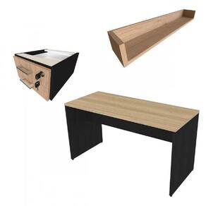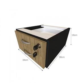 Escrivaninha 2 Gavetas com Prateleira Suspensa Helen Bramov Preto/Carvalho Mel - Bege