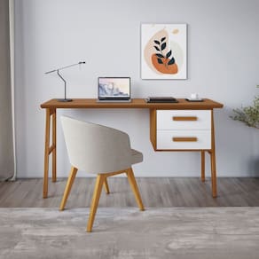 A Escrivaninha Lotus é o toque de elegância e funcionalidade que seu ambiente precisa. Com duas gavetas amplas e estruturada em madeira maciça, oferece durabilidade e resistência para o uso diário. O tampo em MDF proporciona uma superfície lisa e ideal para o trabalho ou estudos, enquanto o design minimalista e sofisticado harmoniza com qualquer decoração. Seja para um home office, quarto ou sala, a Escrivaninha Lotus é perfeita para manter o ambiente organizado e estiloso.