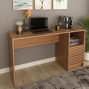 A Escrivaninha ME4174 surpreende com a sua combinação com todo tipo de ambiente. Conta com duas gavetas, além de um nicho com amplo espaço para a organização de seus pertences, com detalhes em ripado trazendo elegância para o seu móvel.