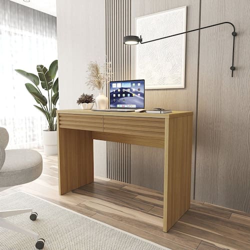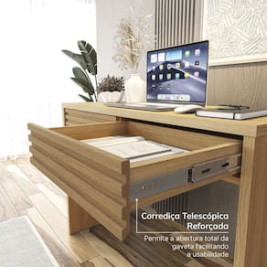 A escrivaninha Samambaia é a escolha perfeita para quem busca um móvel elegante e funcional para seu escritório ou home office. Com seu design moderno e linhas suaves, ela se adapta a qualquer ambiente, trazendo um toque de sofisticação e organização. A escrivaninha possui duas gavetas espaçosas, ideais para armazenar documentos, materiais de escritório e outros objetos pessoais. Além disso, seu tampo é amplo e resistente, proporcionando espaço suficiente para acomodar um computador, monitor, teclado e outros acessórios. Ela é ideal para quem precisa de um espaço funcional e organizado para trabalhar ou estudar. Produto Montado: Sim Acompanha Manual de Instalação: Sim Ambiente Principal: Escritório codigo_ean: 7900288016225 Complexidade da Montagem: Média: pode ser montado por mais de uma pessoa e/ou necessite de maior conhecimento para montagem Cor: Carvalho Cor do Produto: Carvalho Escala de Brilho: Fosco Espessura do Tampo: 2,5 mm Formato: Retangular Gaveta com Chave: Não Itens Inclusos: 01 Escrivaninha, Manual e Kit Ferragens Linha ou Coleção: Samambaia Manual de Montagem e Instalação: https://product-hub-prd.madeiramadeira.com.br/969127/documents/71060170-8c30-4879-b892-b6104366f34f2535821342817308159606173.pdf Marca: CabeCasa MadeiraMadeira Material Principal: MDP Necessita Montagem: Sim Origem do Produto: Nacional Peso: 29,3 kg Quantidade de Gavetas: 02 Gavetas Sistema de Montagem: Parafusos, Cavilhas e Minifix Tipo de Corrediça da Gaveta: Metálica Telescópica Tipo de Escrivaninha: Escrivaninha Penteadeira