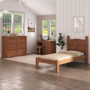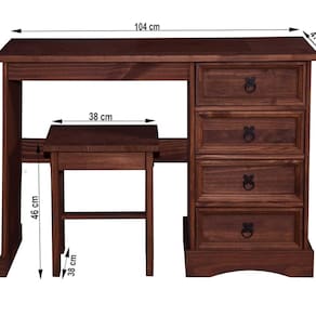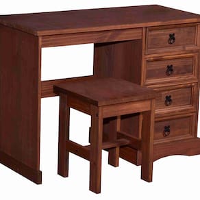 A Escrivaninha 4 gavetas Acapulco é produzida em madeira maciça de pinus, com acabamento na Cera Acapulco que destaca os detalhes naturais da madeira