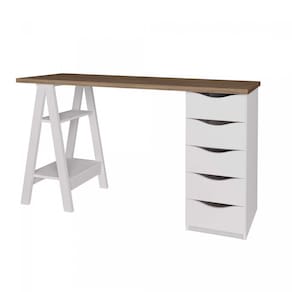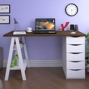 +A+Escrivaninha+Spirit+da+Artany+%E9+ideal+para+sala+de+estar+e+de+estudos.+Possui+5+gavetas+com+corredi%E7as+met%E1licas+e+um+p%E9+em+forma+de+cavalete%2C+garantindo+moderniza%E7%E3o+e+beleza+para+o+seu+espa%E7o.+O+gaveteiro+pode+ser+montado+para+o+lado+direito+ou+esquerdo%2C+se+adequando+ao+ambiente.+O+tampo+%E9+produzido+em+MDP+de+25mm%2C+com+revestimento+em+BP%2C+que+protege+o+m%F3vel+de+poss%EDveis+arranh%F5es. Acabamento: BP Acabamento da Gaveta: BP Acabamento da Prateleira: BP Acabamento dos Pés: BP Altura: 75 cm Altura dos Pés: 50 cm calculo: unidade Complexidade da Montagem: Média: pode ser montado por mais de uma pessoa e/ou necessite de maior conhecimento para montagem Cr: Nogal/Branco Cr Flex: Não Cr Interna: Branco Escala de Brilho: Fosco Escala de Brilho da Gaveta: Fosco Escala de Brilho da Prateleira: Fosco Estilo: Moderno Formato: Retangular Gaveta com Chave: Não Informações Complementares: O gaveteiro pode ser montado para o lado direito e lado esquerdo. Itens Inclusos: 1 Escrivaninha e Manual de Montagem. Largura: 135 cm Linha ou Coleção: Home Office Manual de Montagem e Instalação: https://cdn2.madeiramadeira.com.br/atributo/artany/418551-5657-5658.pdf Material da Gaveta: MDP Material da Prateleira: MDP Material dos Pés: MDP Material Principal: MDF/MDP Montagem Flex: Sim Necessita Montagem: Sim Origem do Produto: Nacional Pés Reguláveis: Não Peso: 30 kg Peso Máximo por Gaveta: 1 kg Peso Máximo por Prateleira: 3 kg Possui Gavetas: 05 Possui Passa Cabos: Não Possui Pés: 01 Possui Porta Objetos: Não Possui Portas: Não Possui Prateleiras: 02 Possui Rodízio: Não Possui suporte para CPU: Não Possui Suporte para Teclado: Não Profundidade: 48 cm Recomendações de Uso, Manutenção e Limpeza: Limpar com pano levemente umedecido. Sapatas Niveladoras: Não Sistema de Montagem: Parafusos, Minifix e Cavilhas. status-cadastro: Aprovado Suporta Até (kg): 20 kg Tamanho: Tipo de Corrediça da Gaveta: Metálica Simples Tipo de Puxador da Gaveta: Embutido