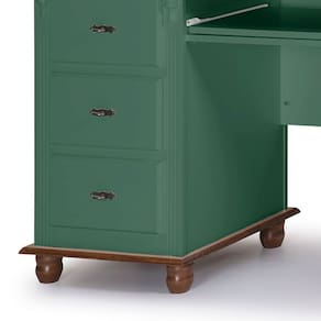 Procurando uma escrivaninha com gavetas para o seu escritório ou home office? A Escrivaninha Linz Office é a escolha ideal, pois com seu amplo tampo em madeira maciça, 6 gavetas com corrediças telescópicas, você terá espaço de sobra para armazenar papéis, canetas e outros materiais de escritório. Além disso, possui suporte para teclado, permitindo uma superfície de trabalho mais ampla e confortável e detalhes divisores de ambiente. Os pés e base em madeira maciça e puxadores metálicos dão um toque de elegância e requinte ao móvel. Produzida em Madeira Maciça para tons amadeirados em verniz e MDF nos tons coloridos com acabamento laca, garantindo qualidade e durabilidade, para que você possa aproveitar ela por muitos anos. A escrivaninha retro é uma excelente escolha para quem procura exclusividade, sofisticação e requinte.