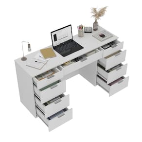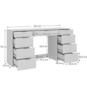 A escrivaninha 9 gavetas Foscarini é uma ótima solução para quem busca criar um cantinho de estudos, lazer ou um home office prático e funcional. Sua base comporta perfeitamente a tela do computador, teclado e alguns objetos de uso diário para o escritório. Compacta e moderna combina facilmente com diferentes estilos de decoração. Conta com 9 gavetas espaçosas com corrediças telescópicas de deslize suave a abertura total. Desenvolvida com processos de alta qualidade, ela é fabricada em 100% BP, com estrutura firme em 15mm e acabamento BP resistente a umidade, riscos e machas. Seu sistema de montagem é rápido e descomplicado realizado através de parafusos, minifix e cavilhas. Puxadores modernos em alumínio. Ideal para renovar seu escritório e organizar seus objetos. Medidas montada (A x L x Acompanha Manual de Instalação: Sim Ambiente Principal: Escritório Complexidade da Montagem: Média: pode ser montado por mais de uma pessoa e/ou necessite de maior conhecimento para montagem Cor: Branco Cor do Produto: Branco Cor Interna: Branco Escala de Brilho: Fosco Espessura do Tampo: 15 mm Formato: Retangular Gaveta com Chave: Não Itens Inclusos: 1 Escrivaninha e Manual de Montagem. Manual de Montagem e Instalação: https://cdn2.madeiramadeira.com.br/atributo/moveis-foscarini/2090799-4663-17194274012135.pdf Material do Puxador da Gaveta: Alumínio Material Principal: MDF Necessita Montagem: Sim Origem do Produto: Nacional Peso: 54 kg Peso Máximo por Gaveta: 10 kg Possui Portas: Não Possui Prateleiras: Não Quantidade de Gavetas: 09 Gavetas Recomendações de Uso, Manutenção e Limpeza: Limpar com flanela ou pano macio seco, não utilizar produtos abrasivos, desengordurantes, álcool ou solvente. Não expor o produto diretamente à luz solar e à umidade. Sistema de Montagem: Fácil e descomplicado, parafusos, minifix e cavilhas. Tipo de Corrediça da Gaveta: Metálica Telescópica
