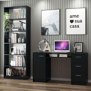 Chegou o conjunto que vai renovar seu home office ou ambiente de estudos. Confira o kit da Escrivaninha Alaska + Estante Livreiro 6908 da Madesa.