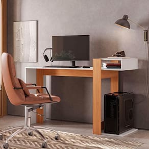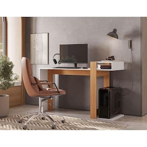 Cor: Freijó com Branco | Quantidade de caixas de embalagem: 1 | Marca: Telasul | É em forma de L: Não | Largura: 48 | Modelo: Versa Home | Profundidade: 48 | Materiais da escrivaninha: MDP | Altura: 87,5 | Requer montagem: Sim | Comprimento: 136