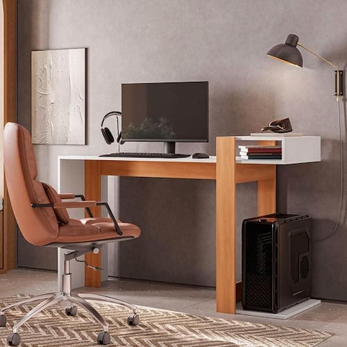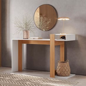 MDPA Escrivaninha Aparador Versa Home é a escolha perfeita para deixar seu hall de entrada, quarto, home office ou sala ainda mais estilosos e práticos. Com design moderno e uma linda combinação de cores, esse módulo é construído em MDP, material de muita resistência. A versatilidade do móvel permite que você o utilize como uma ampla Escrivaninha que possibilita ter tudo organizado e acessível: , luminária, porta canetas, pastas e demais itens para tornar seu cantinho produtivo ou ainda como um prático e elegante Aparador, perfeito para manter itens indispensáveis sempre acessíveis. A montagem é fácil e rápida, proporcionando uma experiência perfeita com a linha Versa Home: versatilidade e charme na medida certa.