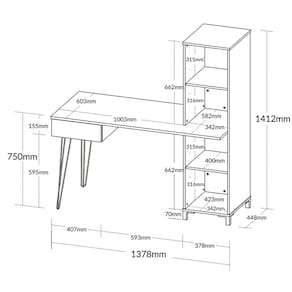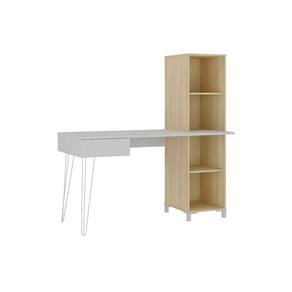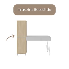 "Eleve seu espaço de trabalho com a Escrivaninha Fusion! Inspirada no estilo industrial, ela agrega traços retos e sóbrios com belos pés de metal, chamados ""hairpin legs"", além da combinação contemporânea das cores concreto com preto. Além de ser estilosa, esta escrivaninha com estante é extremamente funcional, pois oferece diversos nichos para armazenamento e decorações, além de uma prática gaveta abaixo do tampo para materiais do dia a dia. O robusto tampo de 18mm de espessura oferece um generoso espaço de trabalho ou estudo. Bordas ABS e o impecável acabamento BP são suaves ao toque e muito resistentes a diversos anos de uso. Com design moderno e autêntico, esta escrivaninha é a fusão perfeita entre beleza e funcionalidade para transformar seu home office, casa ou escritório!"