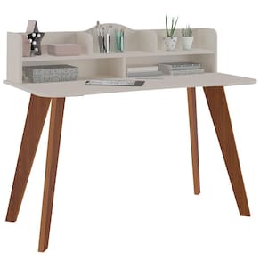 Escrivaninha Artely Sofia com Nichos - 120cm de largura - Off White/Cedro Brilho Fosco