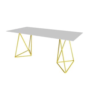 Escrivaninha Bela Vista Cavalete Tampo Branco Base Ferro Amarelo - Cor: Preto