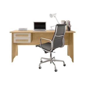 A Mesa de Escritório oferece amplo espaço para notebooks, livros e materiais de trabalho, aliando praticidade e elegância com seu visual clean. As duas gavetas, sendo uma com chave, garantem organização e no dia a dia.