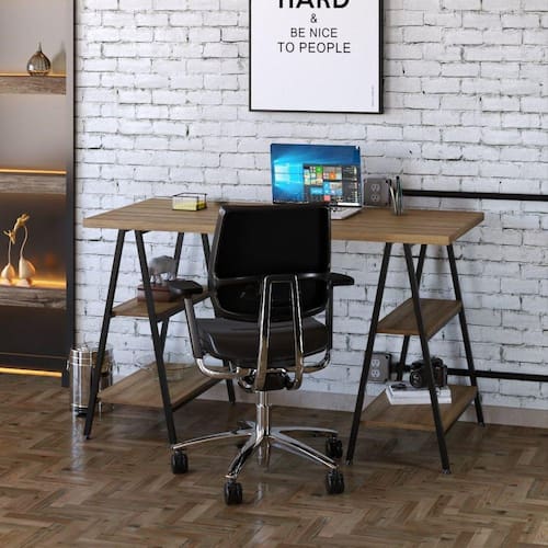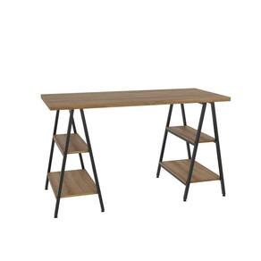 A Mesa Cavalete KUMC6135 Kuadra é um produto prático e versátil, que pode ser utilizado em diversos ambientes, como quarto e escritório, na sala, cozinha ou seu depósito. Conta com 04 prateleiras reforçadas e seu design industrial permite diversas composições de decoração com os demais módulos da linha. Acabamento da Prateleira: BP Acabamento dos Pés: Pintura Ambiente Principal: Escritório Complexidade da Montagem: Média: pode ser montado por mais de uma pessoa e/ou necessite de maior conhecimento para montagem Cor: Lamina Mel Cor da Base: Preto Cor do Produto: Lâmina Mel Cor do Tampo: Marrom Cor Interna: Lâmina Mel Escala de Brilho: Fosco Escala de Brilho da Prateleira: Fosco Espessura do Tampo: 30 Formato: Retangular Itens Inclusos: 1 Escrivaninha, Kit Ferragens e Manual de Montagem Linha ou Coleção: Kuadra Manual de Montagem e Instalação: https://cdn2.madeiramadeira.com.br/atributo/compace-dalex/1259671-manual-novo-cavalete.pdf Material da Prateleira: MDP Material dos Pés: Aço Material Principal: MDP Necessita Montagem: Sim Origem do Produto: Nacional Pés com Regulagem de Altura: Sim Pés Reguláveis: Sim Peso: 24.89 Peso Máximo por Prateleira: 5 Possui Passa Cabos: Não Possui Portas: Não Possui suporte para CPU: Não Possui Suporte para Teclado: Não Recomendações de Uso, Manutenção e Limpeza: Para a limpeza, utilize flanela seca ou pano macio levemente umedecido em água. Utilize um pano seco em seguida. Evite contato com produtos químicos (solventes, thinner, acetona, etc) e não utilize nenhum tipo de esponja de aço. Sapatas Niveladoras: Sim Sistema de Montagem: Parafusos, Minifix, Cantoneiras, Buchas e sapatas reguláveis Suporta Até (kg): 50