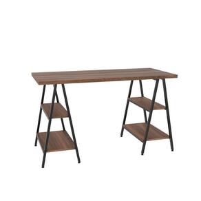 A Mesa Cavalete KUMC6135 Kuadra é um produto prático e versátil, que pode ser utilizado em diversos ambientes, como quarto e escritório, na sala, cozinha ou seu depósito. Conta com 04 prateleiras reforçadas e seu design industrial permite diversas composições de decoração com os demais módulos da linha. Acabamento da Prateleira: BP Acabamento dos Pés: Pintura Ambiente Principal: Escritório Complexidade da Montagem: Média: pode ser montado por mais de uma pessoa e/ou necessite de maior conhecimento para montagem Cor: Nogal Cor da Base: Preto Cor do Produto: Nogal Cor do Tampo: Marrom Cor Interna: Nogal Escala de Brilho: Fosco Escala de Brilho da Prateleira: Fosco Espessura do Tampo: 30 Formato: Retangular Itens Inclusos: 1 Escrivaninha, Kit Ferragens e Manual de Montagem Linha ou Coleção: Kuadra Manual de Montagem e Instalação: https://cdn2.madeiramadeira.com.br/atributo/compace-dalex/1259695-manual-novo-cavalete.pdf Material da Prateleira: MDP Material dos Pés: Aço Material Principal: MDP Necessita Montagem: Sim Origem do Produto: Nacional Pés com Regulagem de Altura: Sim Pés Reguláveis: Sim Peso: 24.89 Peso Máximo por Prateleira: 5 Possui Passa Cabos: Não Possui Portas: Não Possui suporte para CPU: Não Possui Suporte para Teclado: Não Recomendações de Uso, Manutenção e Limpeza: Para a limpeza, utilize flanela seca ou pano macio levemente umedecido em água. Utilize um pano seco em seguida. Evite contato com produtos químicos (solventes, thinner, acetona, etc) e não utilize nenhum tipo de esponja de aço. Sapatas Niveladoras: Sim Sistema de Montagem: Parafusos, Minifix, Cantoneiras, Buchas e sapatas reguláveis Suporta Até (kg): 50