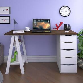 Peso: 29 kg | ProductWeight: 29 | Model: Mobile Spirit | ProductLength: 45 | OriginCountry: | OriginState: PR | ProductHeight: 75 | SupplierSimpleName: Escrivaninha Cavalete 5 Gavetas Mobile Spirit BrancoNogal - Artany | ProductInstructions: Produto para uso em ambiente interno, nao devendo ficar exposto ao sol, calor e umidade excessivos. | ProductContents: 1 Escrivaninha | Origem: | ProductWarranty: 90 dias após o | Requere montagem: Sim | Altura: 75 cm | ColorSupplier: Branco Nogal | AssemblyRequired: Sim, a montagem é simples mas sugerimos a contratação do nosso de montagem (para os CEPs em | ColorFamily: Branco | ColorSimple: Branco | Manual: Sim | Color: Branco | Cor: Branco/Nogal | Gênero: Unissex | ProductWidth: 136 | Profundidade: 45 cm | Largura: 136 cm | Material: MDP | SizeDescription: 75 x 136 x 45 cm | MaterialFamily: MDP