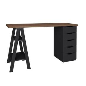 Color: Preto | OriginState: PR | ProductLength: 45 | Gênero: Unissex | ProductHeight: 75 | MaterialFamily: MDP | OriginCountry: | SupplierSimpleName: Escrivaninha Cavalete 5 Gavetas Mobile Spirit PretoNogal - Artany | Cor: Preto/Nogal | Requere montagem: Sim | ProductWarranty: 90 dias após o | Altura: 75 cm | ColorFamily: Preto | ColorSimple: Preto | ColorSupplier: Preto Nogal | ProductWidth: 136 | AssemblyRequired: Sim, a montagem é simples mas sugerimos a contratação do nosso de montagem (para os CEPs em | Model: Mobile Spirit | ProductInstructions: Produto para uso em ambiente interno, nao devendo ficar exposto ao sol, calor e umidade excessivos. | Manual: Sim | Origem: | Material: MDP | ProductContents: 1 Escrivaninha | ProductWeight: 29 | Profundidade: 45 cm | Peso: 29 kg | Largura: 136 cm | SizeDescription: 75 x 136 x 45 cm