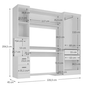 1x Módulo Roupeiro 2 Portas 2 Gavetas Internas Viena Branco Largura: 71 cm Altura: 204,5 cm Peso: 54,5 kg Profundidade: 49 cm Necessita Montagem: Sim