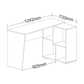 Possui lateral e tampo com corte diagonal e um design totalmente moderno com quatro nichos assimétricos.