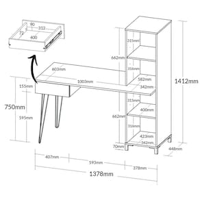 Escrivaninha com Estante e Gaveta Fusion Terrazza/Carvalho - Design Industrial, Organização Inteligente