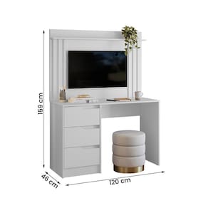 Além disso, a mesa vem com um suporte para TV, permitindo que você aproveite seus programas favoritos enquanto trabalha ou estuda.