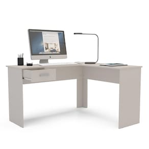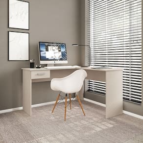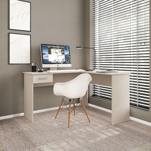 Escrivaninha de Canto Politorno Fênix Formato L 1 Gaveta MDP Pintura UV Espaçosa e Funcional - OFF WHITE