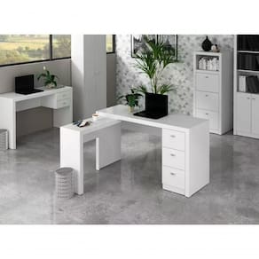 Escrivaninha de Canto Reversível Home Office, estrutura em MDP de 15mm, pintura com acabamento em BP (Fosco), gavetas com corrediças metálicas, puxadores cromados, deixe seus dias de trabalho mais produtivos, perfeita para trabalhar e estudar, ideal para colocar seu computador, notebook, documentos e o que você mais desejar. Este móvel chegará em sua casa separado em 01 volume.