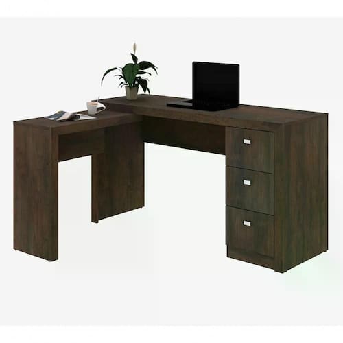Escrivaninha de Canto Reversível Home Office, estrutura em MDP de 15mm, pintura com acabamento em BP (Fosco), gavetas com corrediças metálicas, puxadores cromados, deixe seus dias de trabalho mais produtivos, perfeita para trabalhar e estudar, ideal para colocar seu computador, notebook, documentos e o que você mais desejar. Este móvel chegará em sua casa separado em 01 volume.