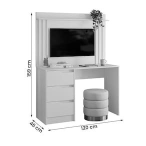 Escrivaninha Doble 3 Gavetas com Painel para TV até 42 Polegadas Ripado Albatroz Cor Branco