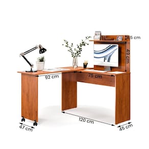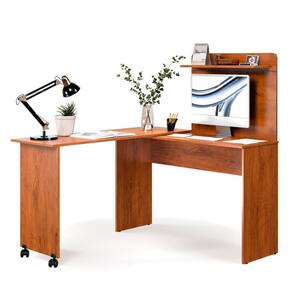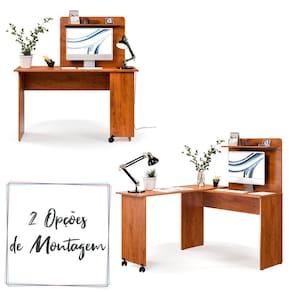 Escrivaninha em L 2 em 1 com Rodízios e Prateleira - Marrom