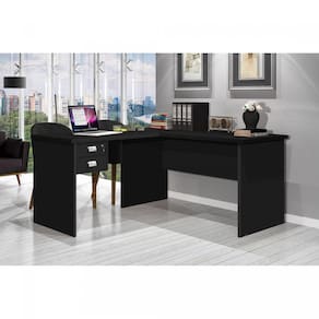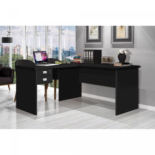 Escrivaninha em L 2 Gavetas 150x120cm Thor J&A Móveis Preto