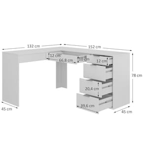 Transforme seu espaço de trabalho com a Escrivaninha Gaveteiro Foscarini, perfeita para unir organização, praticidade e elegância. Seu design moderno, aliado ao acabamento premium, valoriza qualquer ambiente, seja home office, quarto ou escritório profissional. Equipada com 5 gavetas espaçosas, conta com corrediças telescópicas que proporcionam abertura suave e resistente, garantindo praticidade no dia a dia. A ampla superfície de trabalho acomoda notebook, luminária e materiais essenciais, oferecendo conforto e eficiência para suas tarefas. Os puxadores em alumínio conferem um toque sofisticado, enquanto a estrutura robusta assegura resistência e durabilidade. De fácil limpeza e montagem, é o móvel ideal para quem busca um ambiente mais bonito, organizado e funcional. Produto Montado: Sim Acompanha Manual de Instalação: Sim Ambiente Principal: Escritório codigo_ean: 7900288246547 Complexidade da Montagem: Média: pode ser montado por mais de uma pessoa e/ou necessite de maior conhecimento para montagem Cor: Branco Cor do Produto: Branco Cor Interna: Branco Escala de Brilho: Fosco Espessura do Tampo: 15 mm Formato: Em L Gaveta com Chave: Não Itens Inclusos: 1 Escrivaninha, Kit Ferragens e Manual de Montagem Largura do Segundo Lado: 132 cm Manual de Montagem e Instalação: https://product-hub-prd.madeiramadeira.com.br/125996834/documents/a148f273-467d-423b-bc35-765148954dd13245160466317591516820674.pdf Marca: Foscarini Material da Estrutura: MDP Material do Puxador da Gaveta: Alumínio Material do Puxador da Porta: Alumínio Material do Tampo: MDP Material Principal: MDP Necessita Montagem: Sim Origem do Produto: Nacional Peso: 60 kg Peso Máximo por Gaveta: 10 kg Possui Acabamento na Parte de Trás: Sim Possui Portas: Não Possui Prateleiras: Não Quantidade de Gavetas: 05 Gavetas Recomendações de Uso, Manutenção e Limpeza: Limpar com flanela ou pano macio seco, não utilizar produtos abrasivos, desengordurantes, álcool ou solvente. Não expor o produto diretamente à luz solar e à umidade. Sistema de Montagem: Fácil e descomplicado, parafusos, minifix e cavilhas. Tipo de Corrediça da Gaveta: Metálica Telescópica