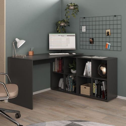 Escrivaninha em L Mesa Office 8 Nichos Nero II Preto - Escrivaninha Nero: Organização, Estilo e Produtividade para o Seu Espaço