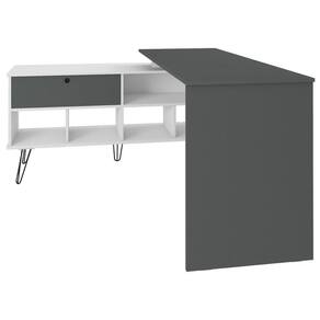 Escrivaninha em L Mesa Office com Nichos e Porta Dubai Branco/Grafito - Escrivaninha Dubai: Estilo Industrial e Design Funcional
