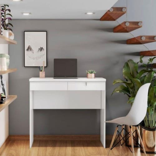 Moderna e atraente com design inovador foi elaborada para deixar seu quarto ou escritório mais inovado, possui gavetas com chave e tampo de 25 mm. Tudo isso pra deixar o cliente mais satisfeito na hora da comprar. Perfeita para atender suas necessidades! Dimensões: Altura: 82 cm Largura: 105 cm Profundidade: 54 cm Características: Modelo: Escrivaninha Acabamento: Pintura UV Acabamento da Prateleira: Pintura Texturizada UV Complexidade de Montagem: Baixa pode ser montado por uma pessoa sozinha Calculo: Unidade Estilo: Moderno Itens Incluso: 01 Escrivaninha e um manual de montagem Linha ou Coleção: Felícia Material Principal: MDP Marca: JCM Móveis Necessita de Montagem: Sim Possui Gavetas: Sim ( Com Corrediças Telescópicas) Gaveta com chave: Sim (01) Possui Passa Cabo: Não Possui Portas: Não Possui Pés: Não Possui Suporte para Teclado: Não Possui Portas Objeto: Não Sapatas Niveladoras: Não Volume: 01 Montagem: Recomendamos que a montagem seja feita por um profissional de sua confiança Instruções/Cuidados: Limpar com pano seco ou levemente umidecido Informações: Os Objetos que ambientam as fotos não acompanham o produto.. Informações Complementares: As imagens são meramente ilustrativas, não acompanham os objetos de decoração; Pode haver alguma diferença de tonalidade entre a foto e o produto, devido ao tratamento de imagens e a calibração do monitor. Marca: JCM Movelaria
