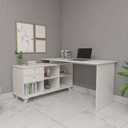 Torne mais agradável seu tempo de home office ou estudo com a Escrivaninha Gold! Uma mesa adequada é essencial para atingir seu melhor desempenho com excelentes resultados! Para isso, esta escrivaninha é muito versátil e tem estrutura flexível, podendo ser montada para o lado esquerdo ou direito, se adaptando ao seu espaço. Os nichos e as gavetas são ideais para manter o ambiente agradável, já que guardam todos os seus objetos, livros e materiais com muita organização. O amplo tampo garante muito conforto e comodidade, para você trabalhar ou estudar com muito espaço para seu computador, notebook, papéis e livros. O grande diferencial deste produto está no seu belo design retrô, proporcionado pelos pés angulados, detalhe que faz toda a diferença na aparência final. Materiais e o revestimento de alta qualidade proporcionam a beleza e alta qualidade que sua casa merece!
