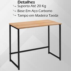 Escrivaninha Industrial Aço Preto I15 Tampo Natural Madeira Taeda Dmobiliario Natural