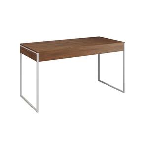 Escrivaninha Industrial Madeira Padrão Office Amêndoa Malta 137x53cm com Base em Ferro Branco - Marrom