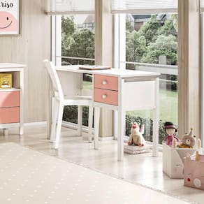 A Casatema é uma loja especializada em Móveis infantis no conceito lúdico, onde a diversão e segurança fazem parte do design de cada peça. Todo o processo de construção de nossos móveis é baseado nas experiências de nossas crianças, o que torna nossos produtos inovadores no mercado! A Escrivaninha Club House Wood Exclusiva Casatema é ideal para os quartos Infantil e Juvenil. Uma peça moderna, que conta com 2 gavetas espaçosas e é perfeita para hora dos estudos. A estrutura é clean, combina com diferentes estilos de decoração. Produzida em Madeira Maciça com a frente das gavetas em MDF, garantindo maior durabilidade. O acabamento em Laca e cepilhado, dando aquele toque macio no produto. Acabamento da Gaveta: Laca Acabamento dos Pés: Laca Altura dos Pés: 43,2 cm Ambiente Principal: Quarto Infantil Complexidade da Montagem: Média: pode ser montado por mais de uma pessoa e/ou necessite de maior conhecimento para montagem Cor: Branco/Rosa Cor da Base: Branco Cor do Produto: Branco/Rosa Cor do Tampo: Branco Cor Interna: Branco Escala de Brilho: Fosco Escala de Brilho da Gaveta: Fosco Espessura do Tampo: 18 mm Formato: Retangular Gaveta com Chave: Não Itens Inclusos: 1 Escrivaninha, 1 manual de montagem, 1 kit ferragens Linha ou Coleção: Sweet Manual de Montagem e Instalação: https://cdn2.madeiramadeira.com.br/prd/serraltense/1252856-CT-8010.001.0001.0033_f.jpg Material da Gaveta: MDF Material do Puxador da Gaveta: Madeira Maciça Material dos Pés: Madeira Maciça Material Principal: Madeira Maciça Necessita Montagem: Sim Origem do Produto: Nacional Pés com Regulagem de Altura: Não Pés Reguláveis: Não Peso: 14 kg Peso Máximo por Gaveta: 5 kg Possui Passa Cabos: Não Possui Pés: 04 Possui Portas: Não Possui Prateleiras: Não Possui Suporte para Teclado: Não Recomendações de Uso, Manutenção e Limpeza: Na limpeza não utilizar produtos químicos e abrasivos, usar apenas um pano umedecido, para garantir a maior durabilidade do móvel. Sapatas Niveladoras: Não Sistema de Montagem: Parafusos e Cavilhas Suporta Até (kg): 25 kg Tipo de Corrediça da Gaveta: Madeira Tipo de Madeira Maciça: Pinus Tipo de Madeira Maciça dos Pés: Pinus Tipo de Puxador da Gaveta: Externo