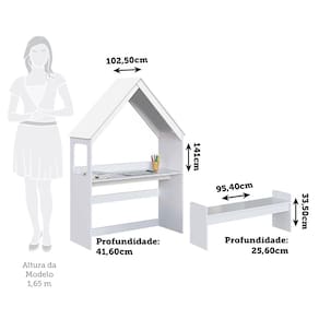 Características: Acabamento em pintura UV Atóxica Banco suporta até 90kg Bordas arredondadas e laqueadas Estrutura 100 em MDF 9mm, 12mm e 15mm Produto Flex, pode ser montada como Cabeceira e Banco ou Escrivaninha e Banco Mesa suporta até 25kg