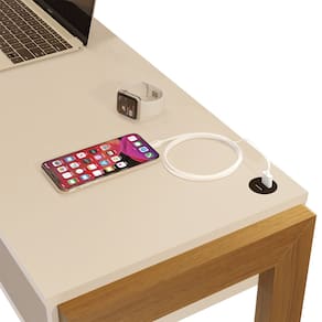 Seu tampo amplo permite acomodar notebooks, livros e materiais de trabalho com conforto, enquanto o nicho inferior oferece espaço extra para objetos de apoio, garantindo organização no dia a dia.