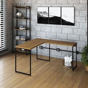 Escrivaninha L Estilo Industrial 135x140cm Dynamica Yescasa Lamina Mel / Preto - Marrom